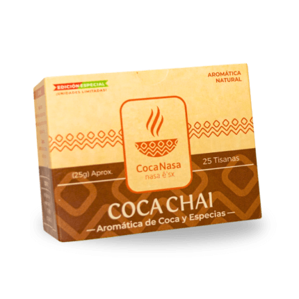 Es una bebida que fusiona las raíces del sur de la India y del norte de Latinoamérica. Contiene hojas de coca y especias como cardamomo, canela, clavo de olor, jengibre, vainilla, anís y té negro. Al igual que el té de coca, el té chai se utiliza de forma sagrada para vigorizar el cuerpo, activarlo y mantener la mente alerta. ¡No dudes en probar esta exquisita bebida!Presentación: (1) caja - 25 tisanas.